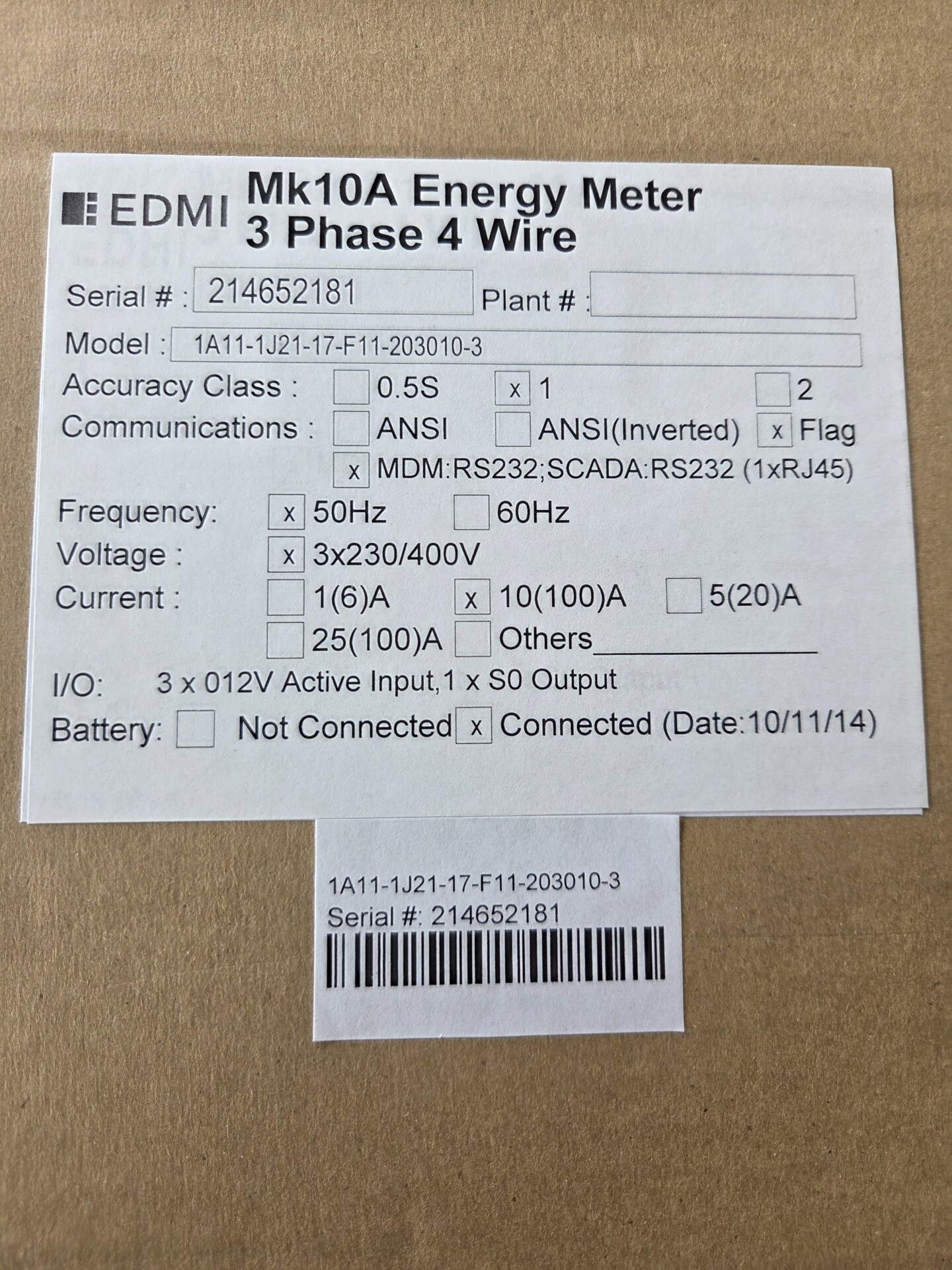 EDMI ATLAS Mk10A, modèle 1A11-1J21-17-F11-2030103, 6 pièces